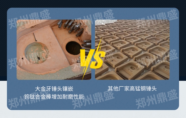 大金牙锤头采用炉外精炼,钢水更纯净,锤头整体采用压力铸造,组织更致密。