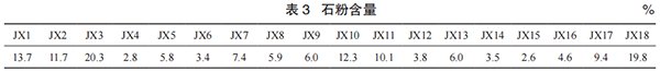 1.3 石粉含量将全省机制砂石粉含量测试所得的数据进行作图分析,如表 3、表 4 和图 3、图 4 所示。