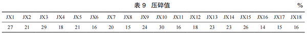 1.9 压碎值根据国家标准 GB/T 14684—2011《建设用砂》中对砂的压碎值不得大于 30%,将全省机制砂压碎值测试所得的数据进行作图分析,如表 9、表 10 和图 12、图 13 所示。