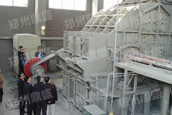 物料由给料机喂入破碎机进料口,并落向旋转的转子,从而被悬挂于锤盘之间告诉运转的锤头打击而破碎,或被抛弃。被抛弃的物料在破碎机的腔中互撞或反击板碰撞而进一步减少粒度。物料通过转子和破碎板之间进一步破碎,或在转子和排料篦子之间进一步细碎,直到得到的产品通过篦缝并排到设于机体下的输送机上。